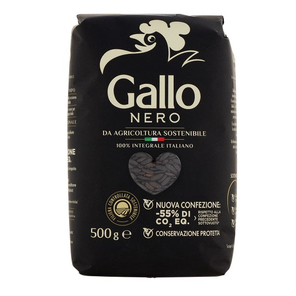 Le riz Gallo Nero est un riz complet 100% italien, avec une couleur noire naturelle incomparable qui libère un arôme caractéristique de pain fraîchement sorti du four pendant la cuisson. Il est originaire de Chine, mais est actuellement cultivé en Italie.